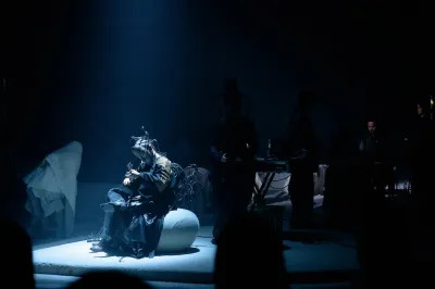 The audience was a mix of local and international arts patrons, professionals, and journalists, seated in a half-circle around a monumental multi-colored yurt by Berlin-based Kazakh visual artist Gulnur Mukazhanova, with additional visuals by Darya Temirkhan. The installation was like the Barsakelmes of legend: a manmade portal to the spiritual plane. Whirling dancers wrapped in white linen passed in and out, drawn by salt lines on the floor. A traditional throat singer sang of families torn apart, according to an attendee fluent in the language. Late into its 90-minute running time, horses charged in—or maybe that was the sound of drums.