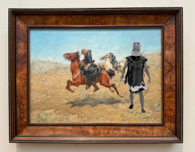 Riva’s artwork is titled Standing Strong (2021), and he is one of 17 North American Indigenous artists that came together for “Encoded,” an unsanctioned AR exhibition hiding within the Met American Wing’s famed artworks and sculptures. The show was co-curated by Tracy Rector and brought online by Amplifier, a nonprofit media lab that partners with artists on projects of political conscience. “Encoded” launched on Monday October 13—the date the United States formally recognizes as both Indigenous Peoples’ Day and Christopher Columbus Day. It will wrap on December 13.